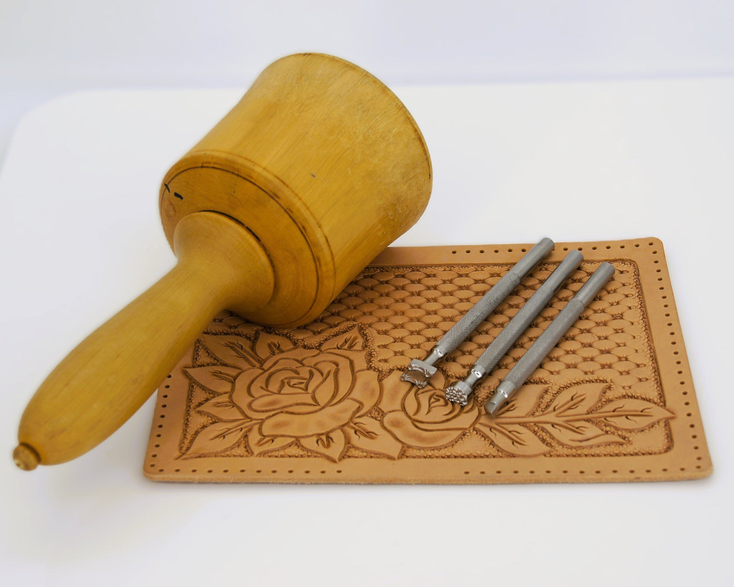 Mittels sogenannter Punzen (Metallstifte mit unterschiedlichen Oberflächen und Mustern) werden individuelle Motive ins Leder eingearbeitet.