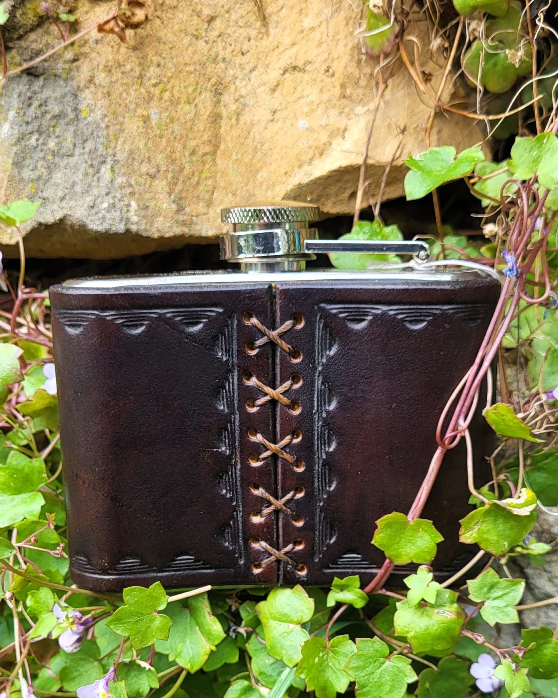 Dieser außergewöhnliche Flachmann verbindet zeitlose Handwerkskunst mit der kraftvollen Symbolik der Natur.