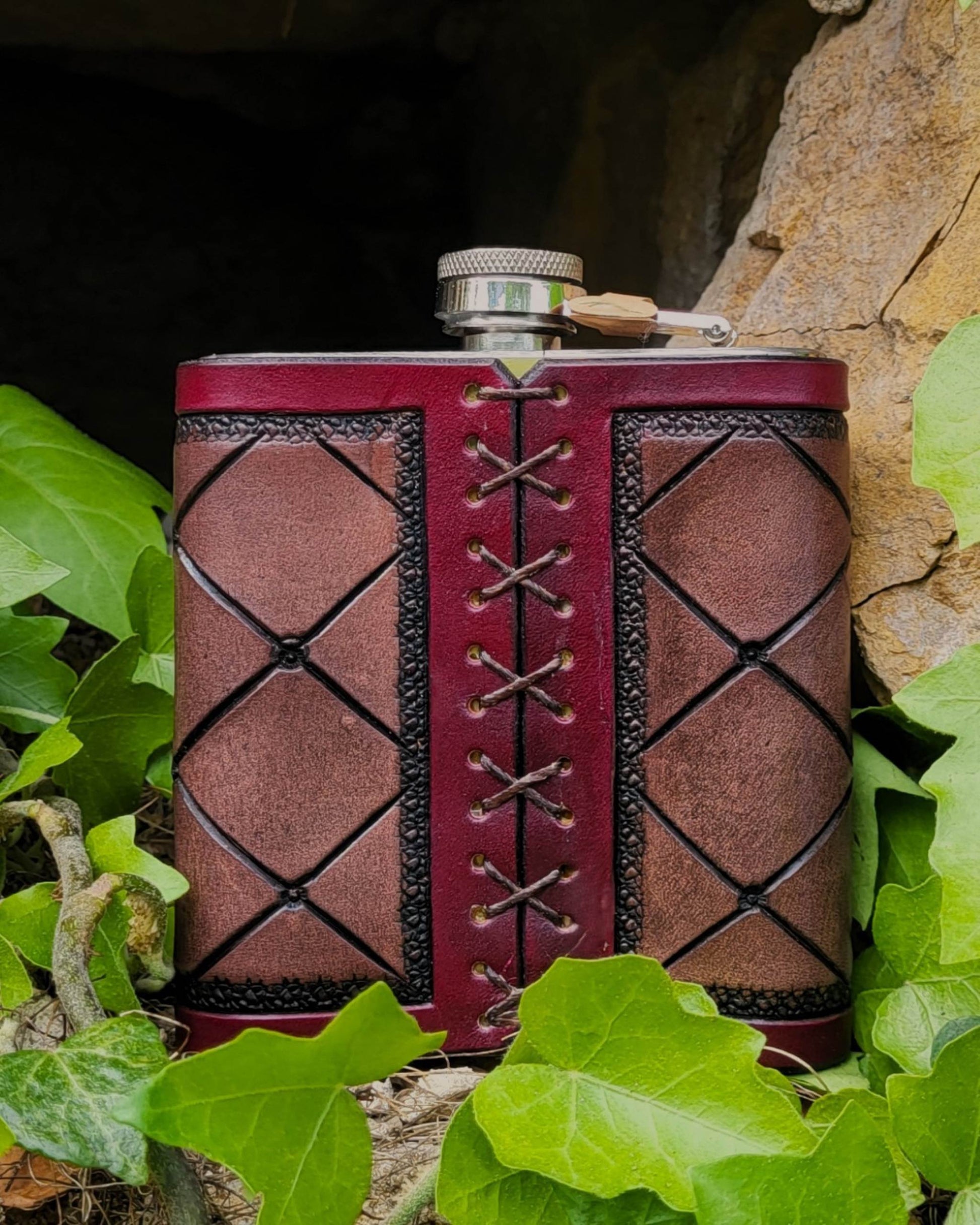 Dieser außergewöhnliche Flachmann verbindet zeitlose Handwerkskunst mit der Schönheit natürlicher Symbolik.